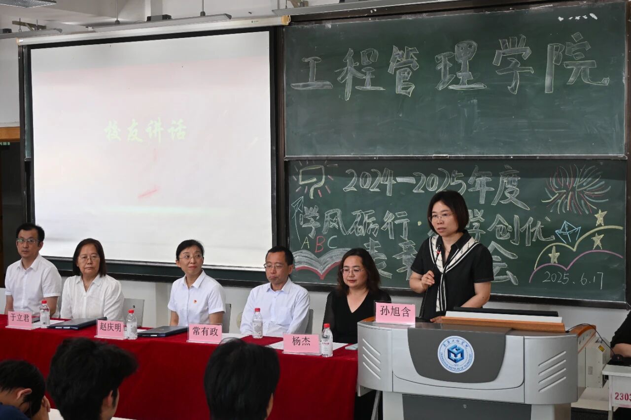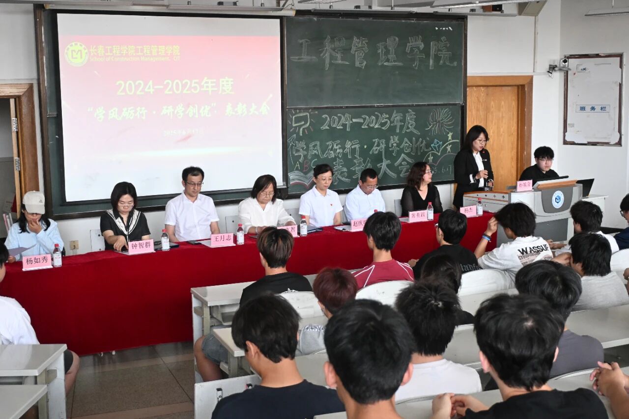 为深入推进学风建设,营造积极向上的学习氛围,激励更多学子在专业领域深耕钻研,我院于6月17日召开2024-2025年度“学风砺行·研学创优”表彰大会,造价9531班校友钟智群、杨如秀、杨杰、学院党委书记赵庆明、院长于立君、副院长王月志、造价9531班班主任、工程造价系教师常有政、专职辅导员、受表彰的先进个人和各年级学生代表参会。学院党委副书记孙旭含主持会议。
