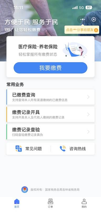 微信“吉林税务社保缴费”小程序核对信息无误后,按以下流程进行缴费。