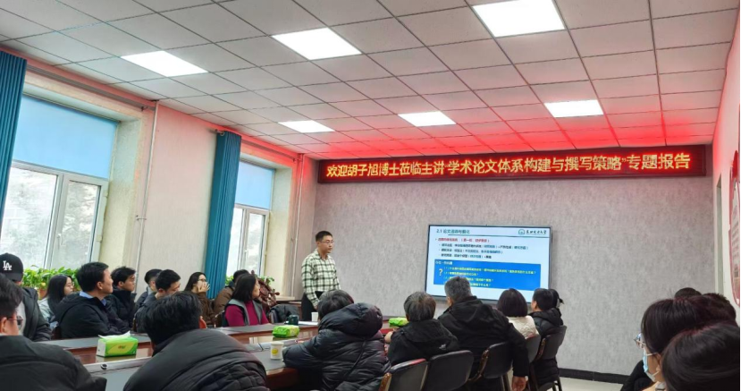 报告会由工程管理学院院长于立君主持。胡子旭博士以“学术论文体系构建与学术论文撰写策略”为主题,结合在研课题“同仁盆地中深层闭循环地热系统取热性能分析及产热性能评估”,系统讲解了学术论文从选题、文献综述、研究方法、结果分析到结论撰写的全流程关键要点。此外,他还针对论文写作过程中常见的问题与解决策略进行了深入分享,为在场师生提供了文献高效调研、数据精准分析以及结果清晰呈现的实用方法,有效提升了学术论文的逻辑性与结构完整性。